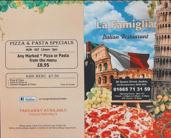 La Famiglia is located at 80 Queen St, Amble, Morpeth, NE65 0DD, United Kingdom. This cozy eatery is easily accessible, with wheelchair-friendly entrance and seating options. Parking is available both free on the street and in local paid lots, making it convenient for visitors. The vibrant local scene often welcomes both tourists and regulars, creating a friendly and lively vibe.